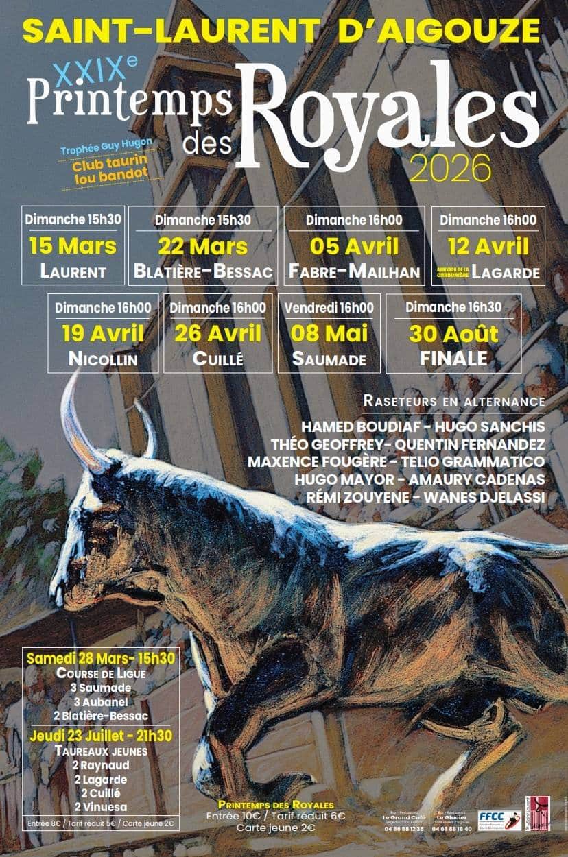 📣 Rendez-vous à partir du 15 mars dans nos arènes pour le 29ème Printemps des Royales, organisé par le club Taurin Lou Bandot
